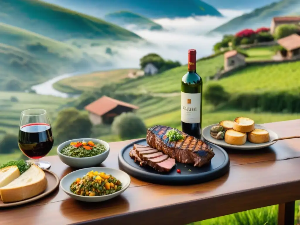 El asado uruguayo suele maridarse con vinos tintos robustos como un Tannat o una Malbec.
